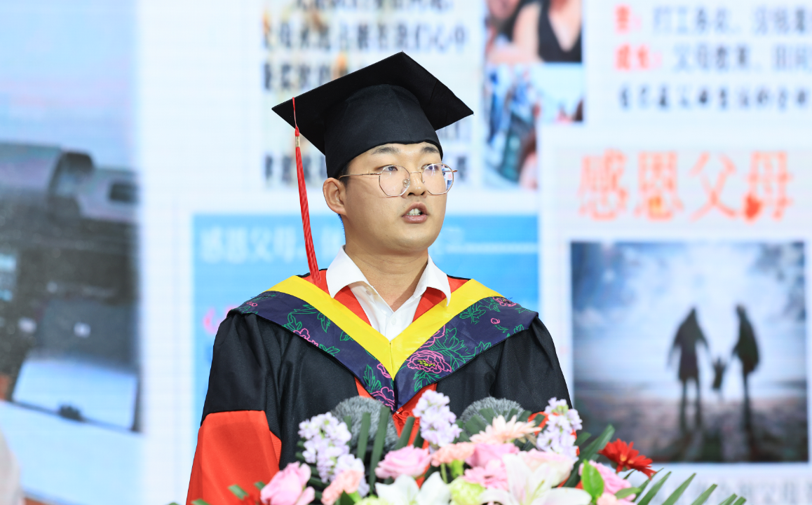 博士毕业生工程学院2021级农业机械化工程专业学生李安琦,本科毕业生动物医学学院2019级动物医学专业学生李诺娃在典礼上分享了在东农的成长故事和收获,深情表达了对母校辛勤培育的感谢与感恩。他们表示,无论身在何处,东农是我们永远的家,将带着所学本领扬帆启航,与母校一起并肩奋进,担当起强国建设、民族复兴的重任,在新征程上奋力书写挺膺担当的青春篇章。