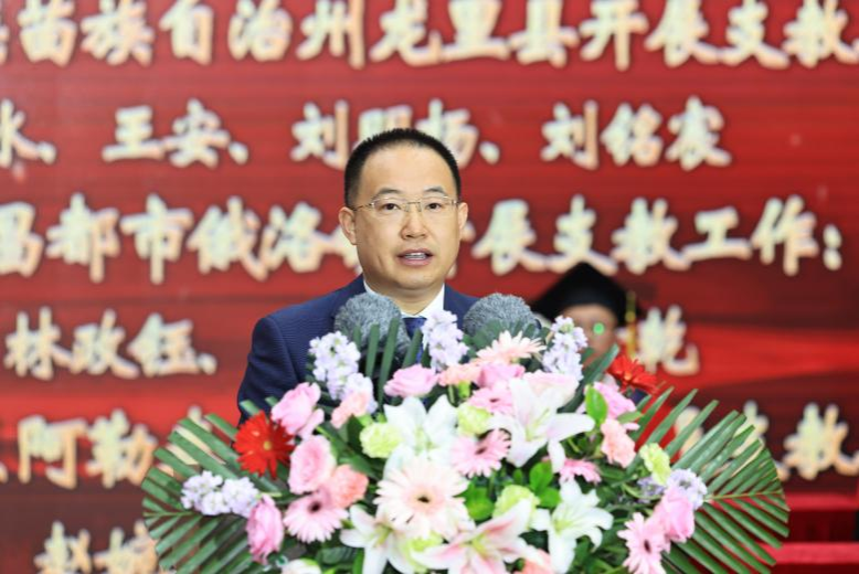 李长生为研究生支教团代表颁发校长奖学金并授旗