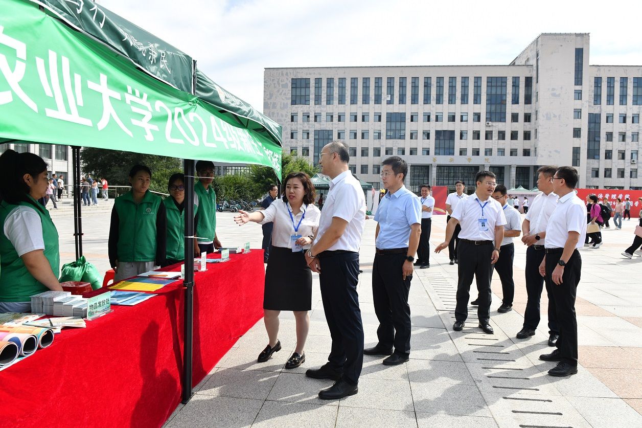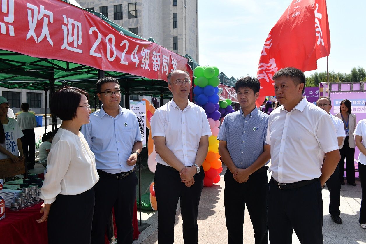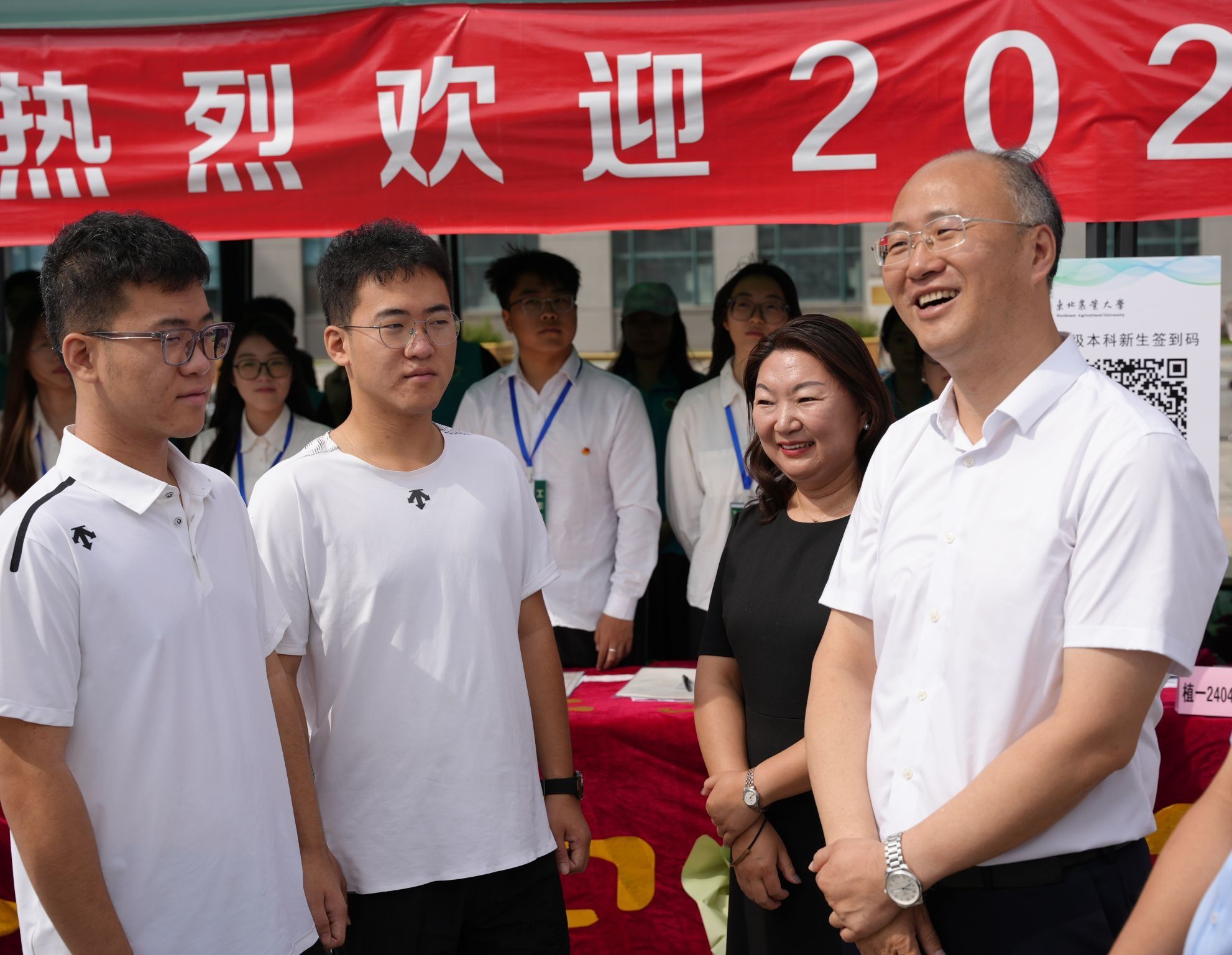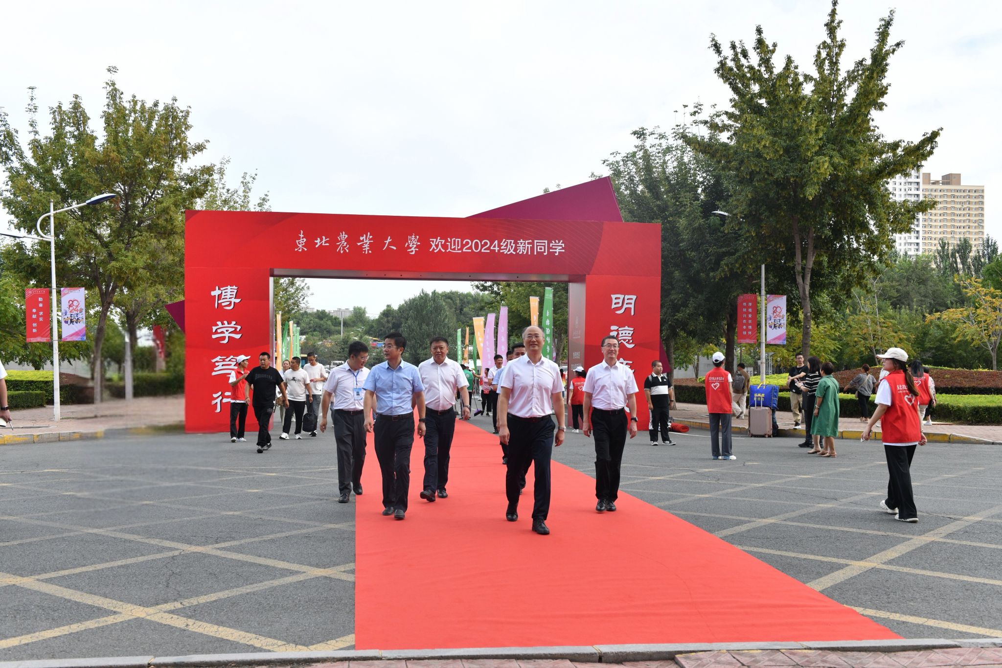 四时俱可喜,最好新秋时。热闹喜庆的东农校园,总有新的故事值得期待。8月29日,是东北农业大学2024级新生报到的日子,校长付强、校党委副书记贺景平、刘晓峰,副校长刘忠华来到学校迎新现场,亲切看望新生及家长,慰问奔波在迎新一线的师生员工。