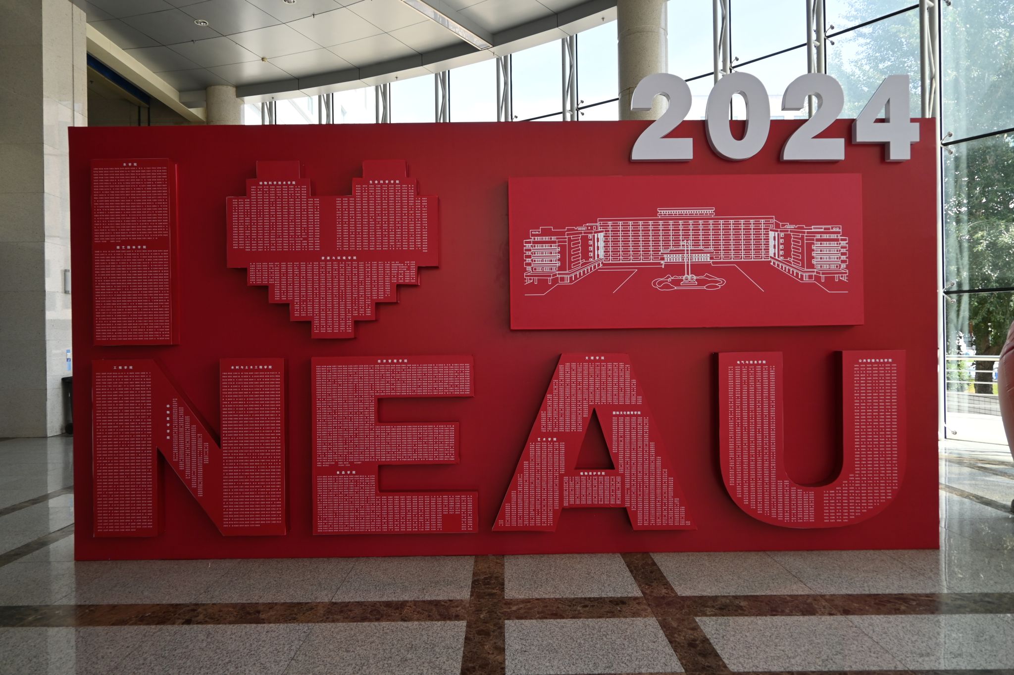 今年的迎新现场设置在学校成栋楼南广场。从学校长江路北门至成栋楼,铺设了一地红毯,新生迈上红毯,步行至报到入口处,寓意着迈向了人生的新阶段。成栋楼大厅左侧,是学校为全体新生制作的专属姓名墙,将每一名2024级萌新的名字镌刻在“I Love NEAU”上,新生们可以在这里圈出自己的名字,打卡拍照。成栋楼大厅右侧,是“欢迎新同学”的标语,激励新生们厚植爱农情怀、练就兴农本领,争当“立大志、明大德、成大才、担大任”的时代新人。来到成栋楼南广场,“立足现代农业 突出北方特色”彰显了东农人为新时代新征程龙江现代化建设贡献智慧和力量的决心。