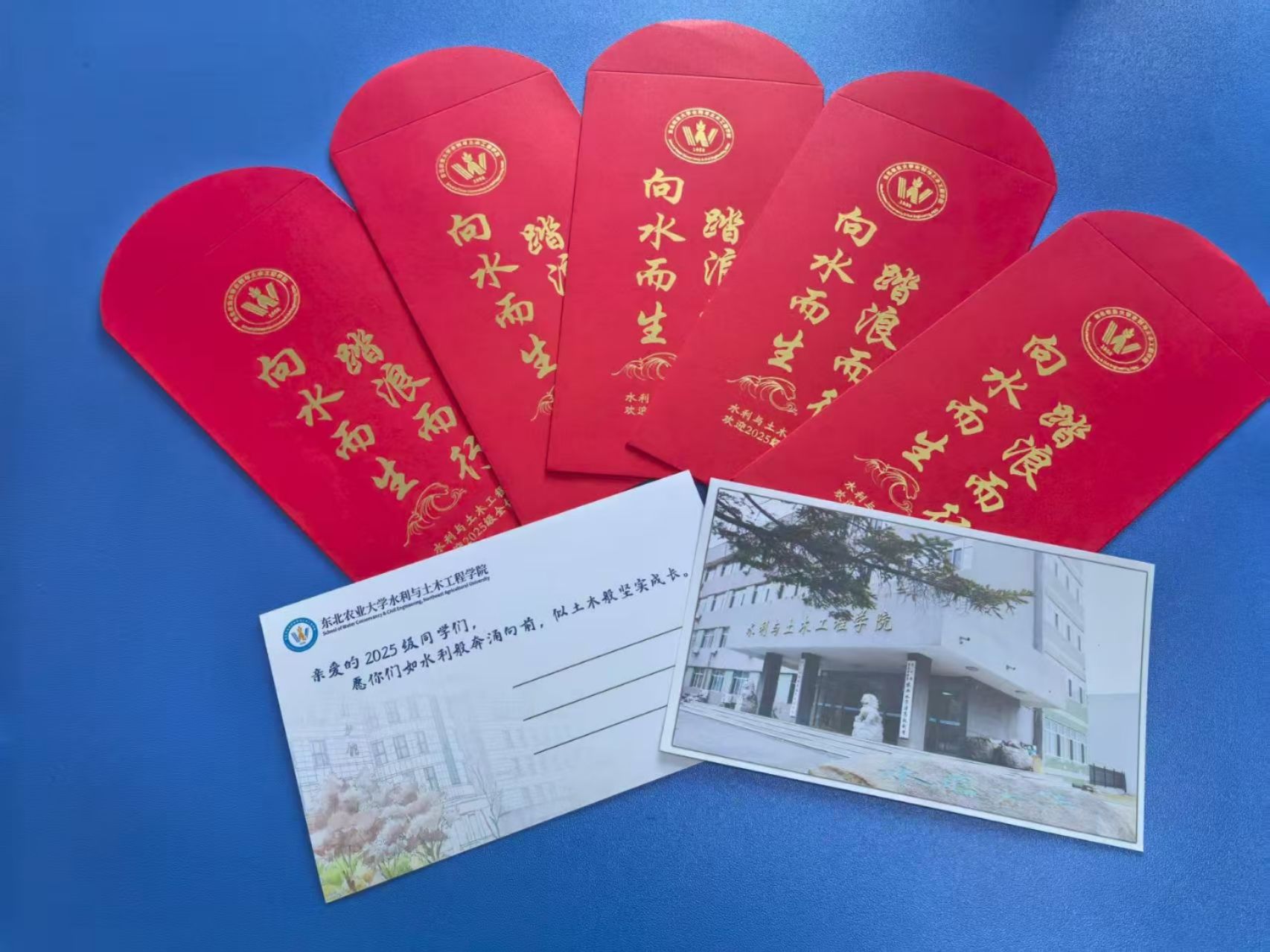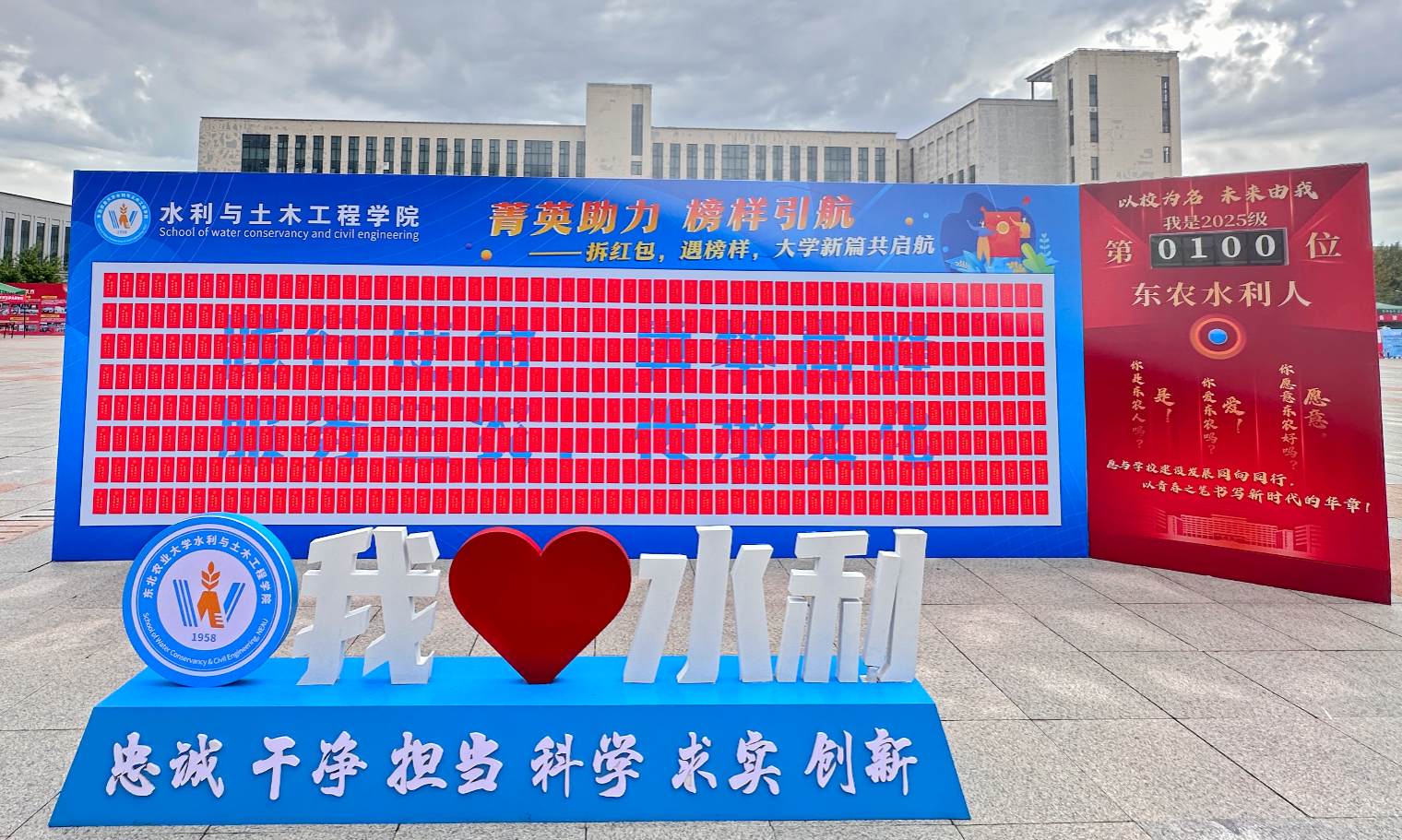 学院特别设立“新生报到计数墙”,为每一位新生标记专属的“东农水利人”编号,强化身份认同与入学仪式感;创意开展“菁英助力,榜样引航”红包墙活动,组织高年级品学兼优学生与新生结对帮扶,构建一对一成长支持体系,彰显学院薪火相传的育人传统。在“礼遇萌新”上,学院推出定制U盘,内含大学期间重点难点课程学习资料、书签、明信片等一系列实用性与文化内涵并重的伴手礼,将水利与土木专业元素巧妙融入其中,兼具纪念价值与教育意义。同时,现场还陈列了多种学科实验仪器与模型,使新生提前体验专业实践氛围,激发科研兴趣与探索动力。通过视觉呈现、互动体验与心意礼赠的多维融合,营造出热烈而温馨的入学氛围,深刻体现了学院的人文关怀、创新意识和育人实效,为新生的大学之旅奠定了意义深远的开端。