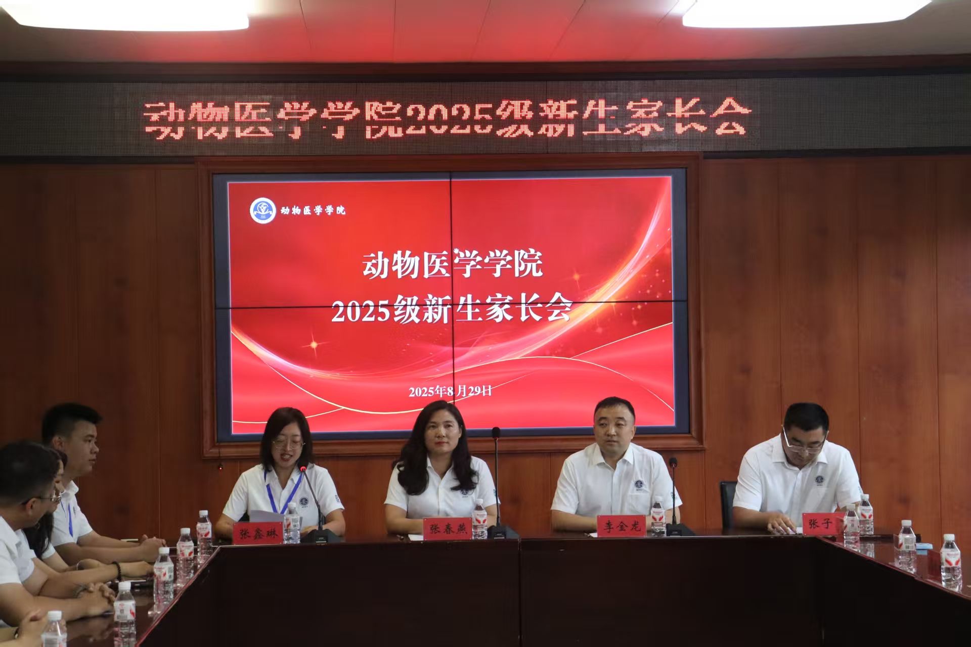 8月29日下午,学院在临床楼215会议室召开2025级新生家长会。学院党委书记张春燕、院长李金龙、党委副书记张鑫琳、副院长张子威,新生班主任,辅导员及新生家长参加会议。会议由张鑫琳主持。会上,与会家长观看了学院宣传片《仁心为医稼穑生辉》和《携手护航,共同成长——新生家长心理赋能三部曲》公益微课。张春燕代表学院对各位家长表示热烈欢迎,对家长的信任与托付表示衷心感谢,并希望家校协同,共同做学生思想的引领者、生活的守护者、成长的见证者。李金龙系统介绍了学院发展历程、学科优势特色与人才培养体系,深刻阐释了动物医学的时代内涵与发展前景。张鑫琳围绕学生工作体系及学生管理相关规定作详细说明。张子威重点讲解科研平台与本科生创新能力培养路径。互动环节,学院领导就家长关切的专业学习、就业方向、生活服务等问题逐一耐心解答,现场气氛融洽、交流充分。会后,家长们在辅导员带领下参观学院文化墙,进一步了解学院历史与育人成果。