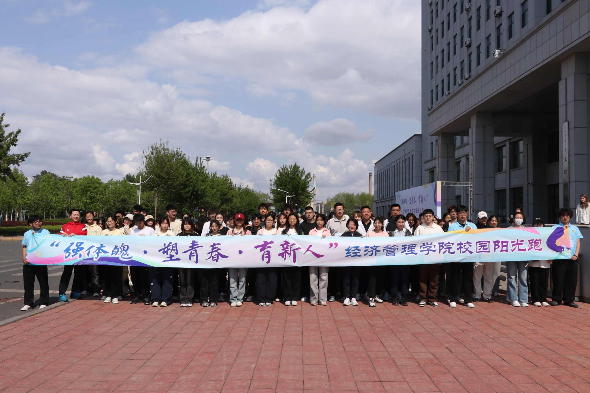 为落实“健康中国”战略,坚持“五育”并举,强化“以体育人”实效,5月24日,经济管理学院在成栋楼北广场举办“强体魄·塑青春·育新人”校园阳光跑活动,学院全体辅导员及各年级学生参加活动。活动由学院党委副书记高天琦主持。