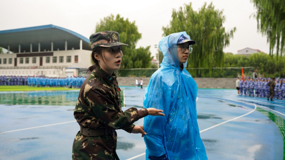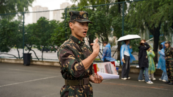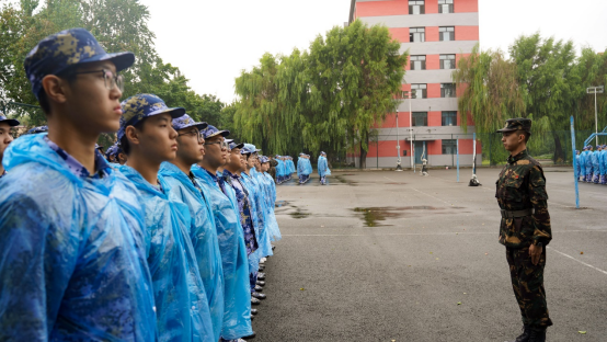 上午参训新生主要进行队列训练。细雨蒙蒙,浇不灭参训新生训练的热情,他们听从教官指挥,认真学习动作要领,成为了操场上一道道亮丽的风景线。